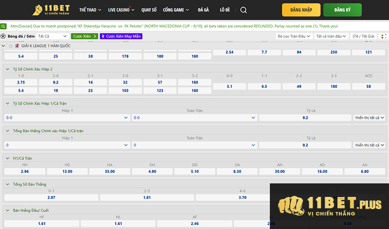 Đây là 1 kèo cược khá hay, vừa sức và rất phù hợp với mọi đối tượng. Nếu bạn đã chọn được 1 sảnh cá cược bóng đá chất lượng như 11bet. Vậy thì hãy sàn lọc ra những trận đấu phù hợp và tiến hành bắt kèo này nhé.
