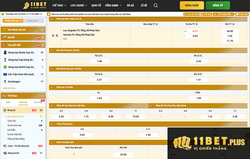 Ví dụ, nếu bạn chọn bắt kèo chấp phạt góc của 1 giải đấu lớn ở châu Mỹ. Như hình trên, ta sẽ chọn cược thông qua cặp trận giữa Los Angeles vs Toronto FC